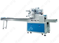 Машина упаковывает в трехшовные пакеты флоупак (пакет подушка):